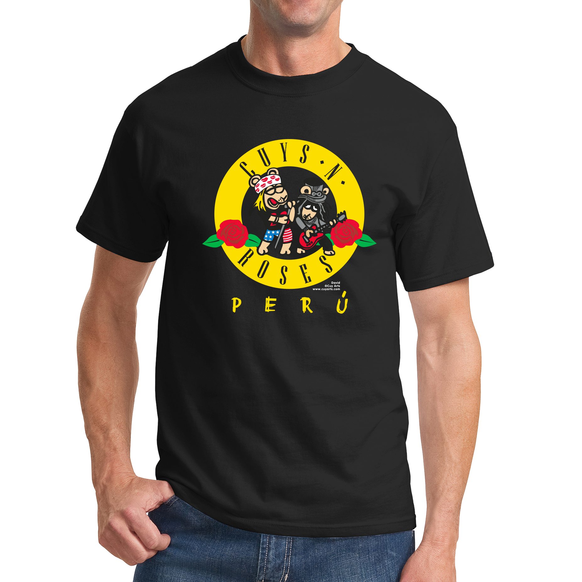 ¡Salta, Sacude tu cabeza y agita tus puños porque esto se esta poniendo duro!. Cuy Arts presenta este polo tributo a la banda de Hard Rock, Guns and Roses. porque un clásico es un clásico y esto es una joya que vale la pena tener. ¡apresúrate antes que se agoten!