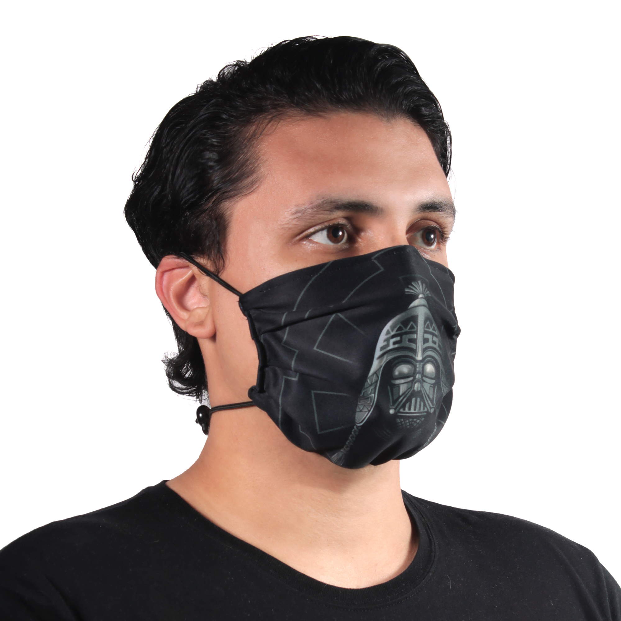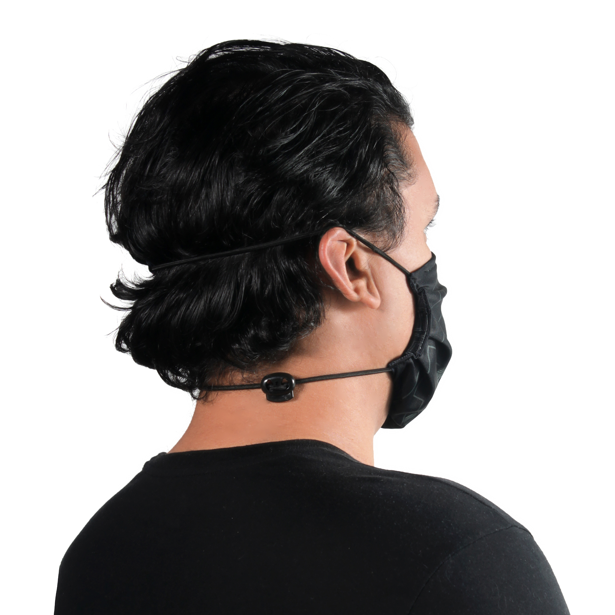 5. (opcional) En caso que la mascarilla necesite mas tensión para su fijación en el rostro, Jalar el cordón de la zona inferior por el sistema de aguante.
